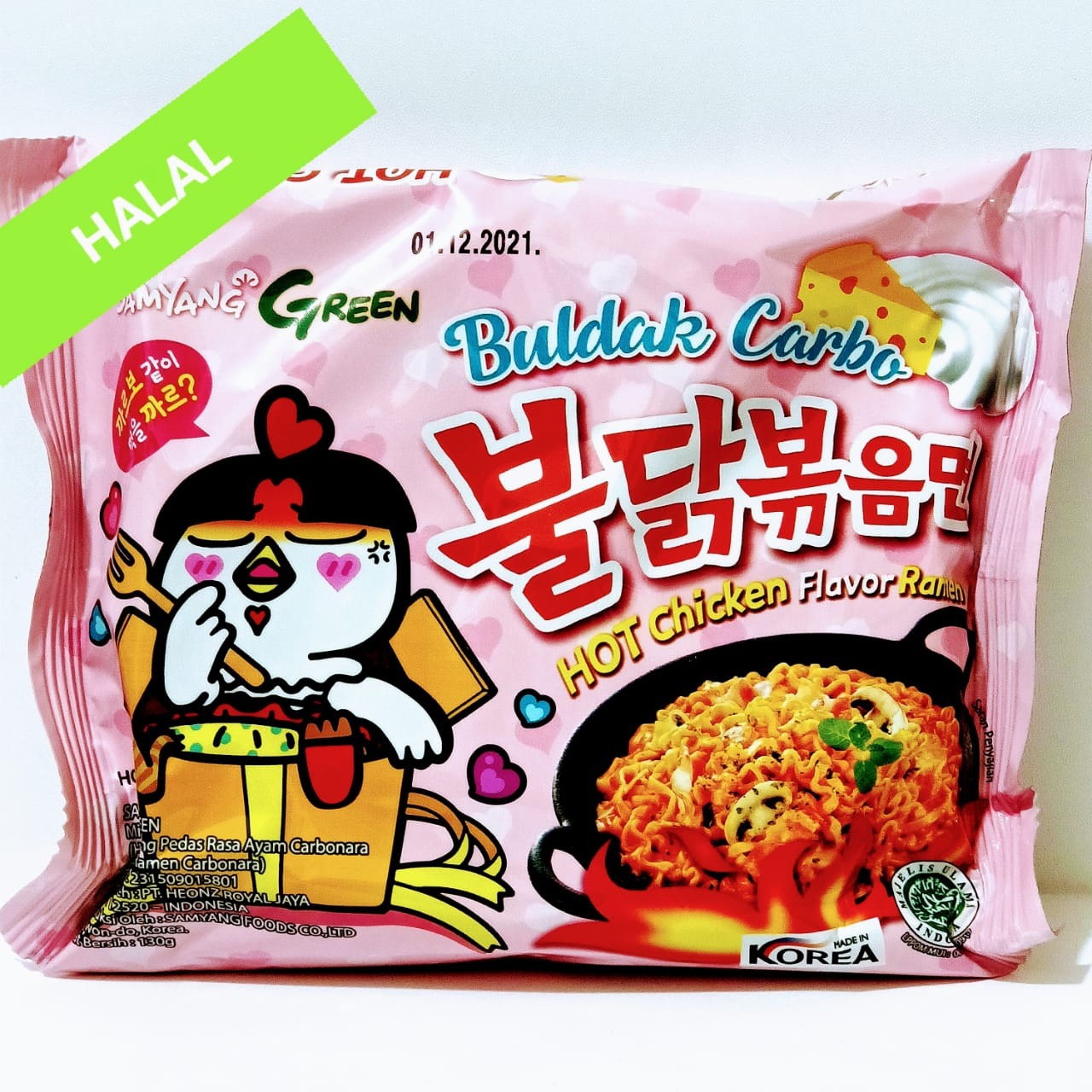 Terus samyang carbo ini berat nettonya lebih kecil daripada samyang cheese atau samyang hot. Samyang Buldak sendiri kini tidak asing di telinga masyarakat Muslim karena telah ada keterangan mie instan ini Halal sehingga aman dikonsumsi umat Muslim. Bagi yang nggak doyan pedas samyang carbo bisa dicoba.