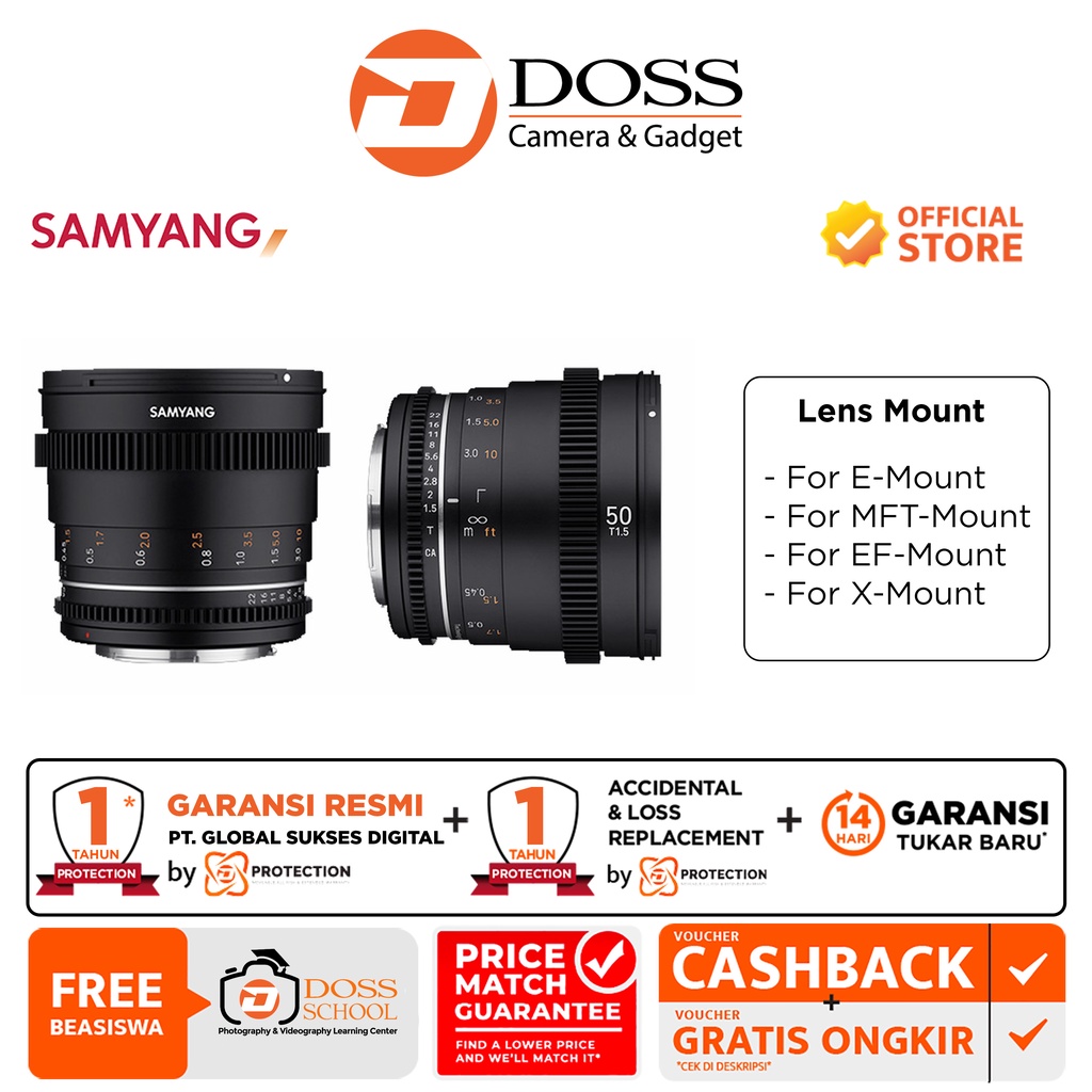 Samyang Vdslr 50mm T1 5 Mk2 Sony E Ef Mft Shopee Indonesia