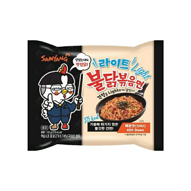 - Lighter in calories thanks to noodles that arent fried. SAMYANG Hot Chicken Spicy Light 40 Less Spicy Instant FIRE NOODLES. Alternatively Samyang also has options for those of you who love the taste of the spicy Korean instant noodles but cant take the heat.